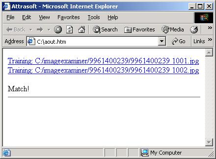 C:\newlycaptured\L12063.jpgThe newly captured image, C:\newlycaptured\L12063.jpg, will be matched against three previously stored images.